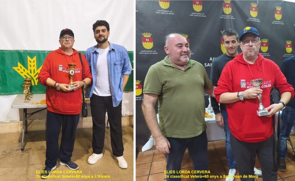 Elies Lorda Cervera, segon classificat de la categoria Veterà+60 del III Circuit Escacs Azahar 2025 (Castelló) a L’Alcora el 19 d’octubre i el 26 d’octubre també finalitza 2n classificat Veterà+60 a Sant Joan de Moró, de partides ràpides.